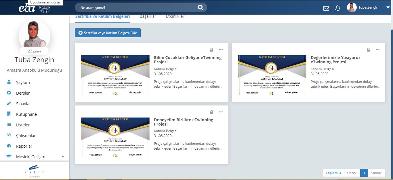 PROJEYE KATILIM BELGELERİMİZİ EBA'YA YÜKLEDİK
